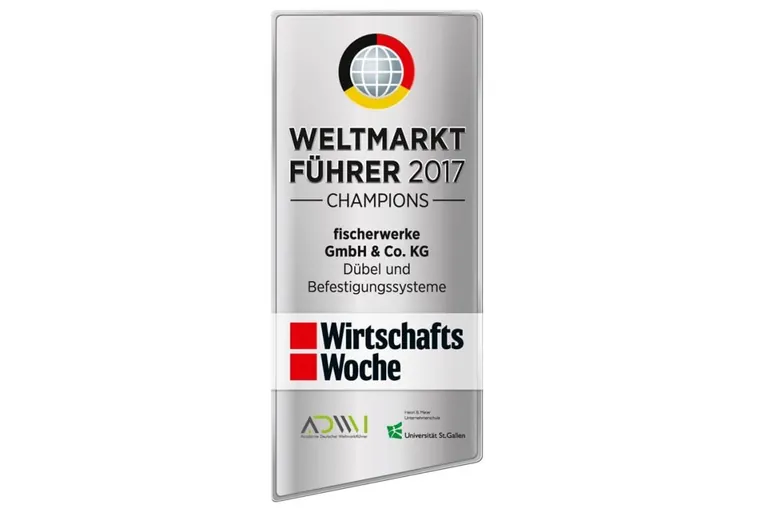 Im neuen Weltmarkführerindex der Universität St. Gallen und der Akademie Deutscher Weltmarktführer ist Fischer als „Weltmarktführer Champion 2017“ im Segment „Dübel und Befestigungssysteme“ gelistet.