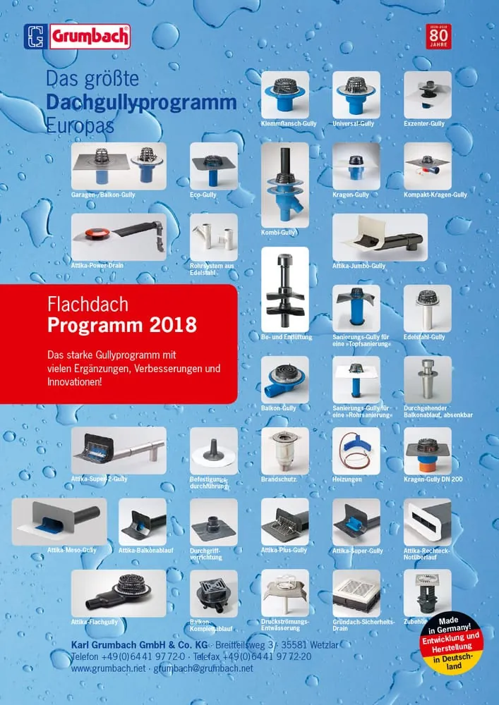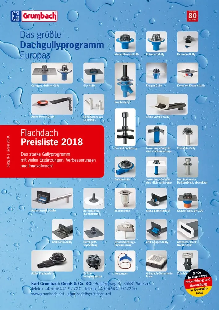 Die Karl Grumbach GmbH hat ihr 76-seitiges „Flachdach-Programm 2018“ sowie die neue „Flachdach-Preisliste 2018“ herausgegeben.