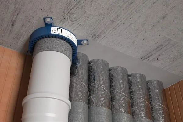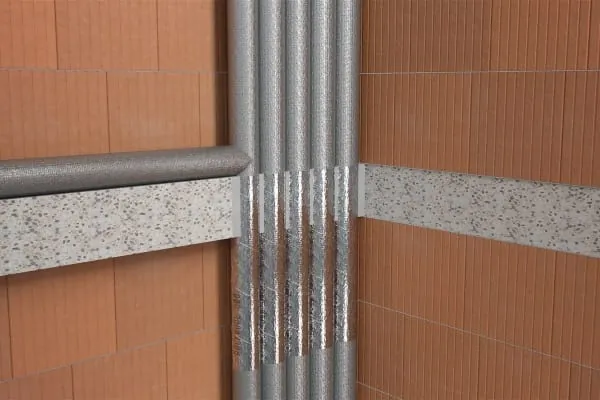 Die alpex-­Rohre von Fränkische dürfen im Nullabstand zu brennbaren Kunststoff-­Abwasserrohren verlegt werden. Dafür müssen diese mit der Doyma Curaflam Manschette und alpex mit einer geprüften Dämmschale versehen sein.