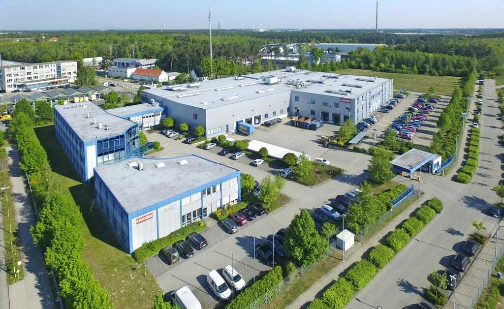 Werksansicht des deutschen Standorts von Water Systems Commercial, der Franke Aquarotter GmbH, in Ludwigsfelde. – © Franke Aquarotter