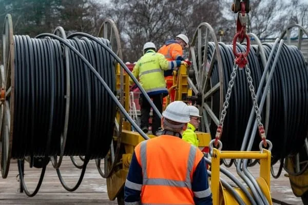 Fachleute bereiten sich auf das Verlegen der Erdwärmesonde vor.