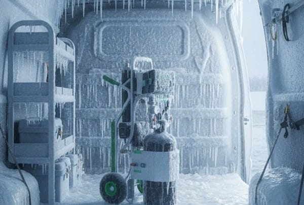 Gerade im SHK-Alltag bleibt nach Feierabend oft alles im Transporter. Verständlich – aber im Winter riskant. Über Nacht sinken die Temperaturen im Laderaum schnell deutlich unter 0 °C, selbst wenn das Fahrzeug in der Halle steht. Das kann Folgen haben wie, dass in den Aufbereitungsgeräten verbliebenes Wasser gefriert oder das Mischbettharz kann in Kartuschen oder Aufbewahrungssäcken einfrieren und diese durch die Ausdehnung des Eises zum Platzen bringen. Darum gilt: Keine Geräte oder Harze im Fahrzeug über Nacht lassen! Lieber morgens gezielt einladen und abends wieder ins Warme bringen.
