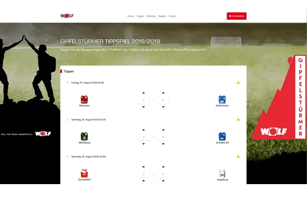 Zum Beginn der Bundesliga-Saison hat die Wolf GmbH im Rahmen ihres Partnerprogramms Gipfelstürmer ein Fußball-Tippspiel gestartet. Teilnehmende Betriebe können die erspielten Punkte schließlich gegen Sachprämien tauschen.