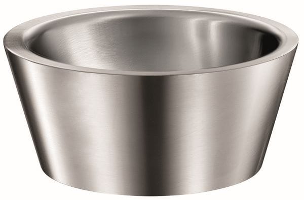 Delabie-Aufsatzbecken Algui Edelstahl. Die Hygiene-Accessoires und die Sanitär-Ausstattung werden aus Edelstahl gefertigt, der demnach zu 50 bis 65 % aus recycelten Materialien besteht und 100 % recycelbar ist.