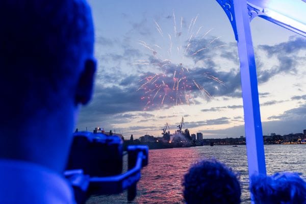 Der Schuppen 52 in Hamburg bot als Veranstaltungsort unter anderem eine atemberaubende Aussicht auf die Elbphilharmonie.
