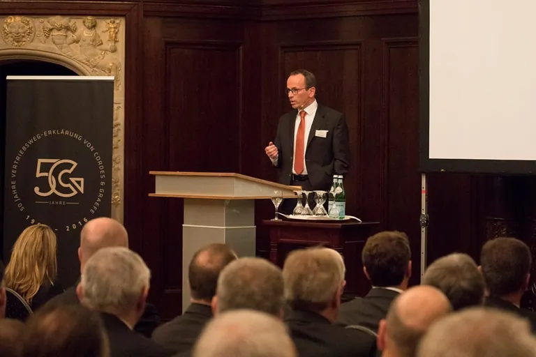 Im Anschluss an Uwe Hollweg richtete Thomas Werner, persönlich haftender Gesellschafter der Cordes & Graefe KG, den Fokus auf Gegenwart und Zukunft. Werner betonte, dass die Partner im dreistufigen Vertriebsweg nur gemeinsam erfolgreich sein können.