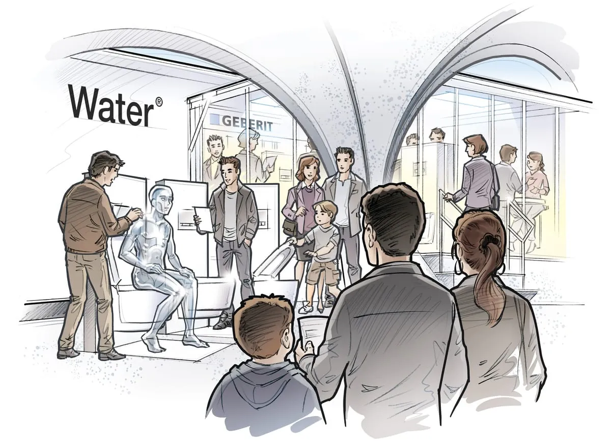 Die Kampagne soll die Endverbraucher für die Reinigung mit Wasser am WC begeistern und damit Auslöser für eine neue Bewegung sein. Im Fokus der Präsentation steht neben dem Dusch-WC das eigene Erleben. „Aus unserer Erfahrung wissen wir: Das erste Mal auf einem Geberit Aquaclean Dusch-WC ist immer ein Erlebnis“, erläutert Thomas Brückle den Ansatz der Kampagne.