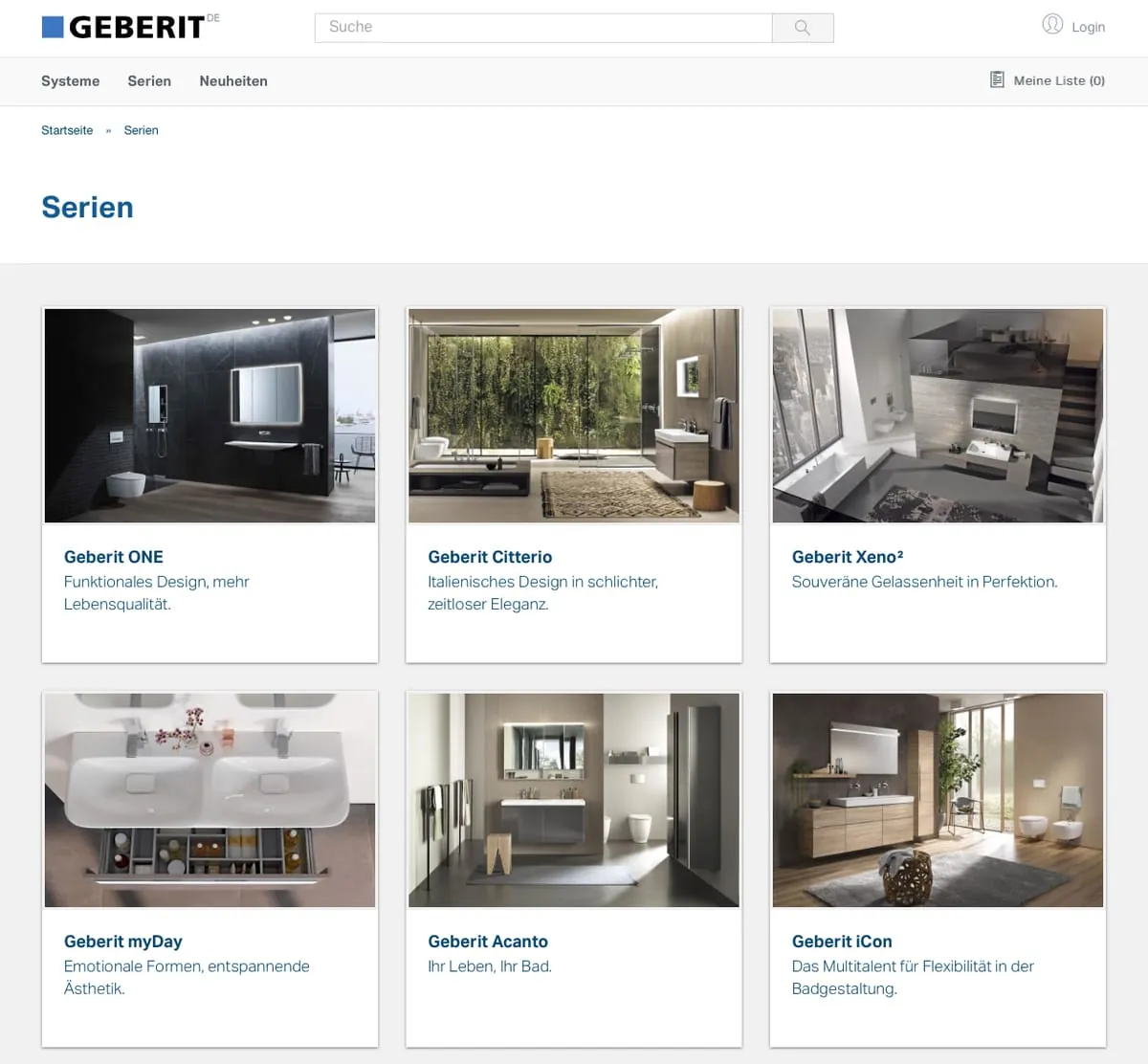 Online-Produktkatalog zeigt Markensortiment von Geberit