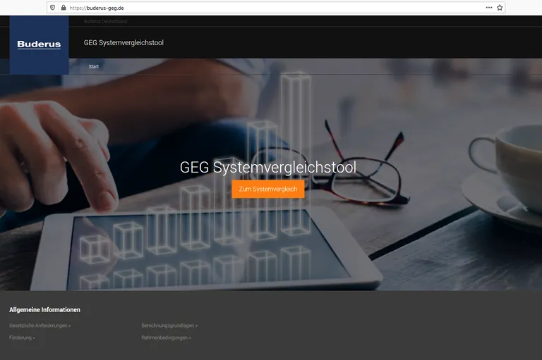 Das Buderus GEG Systemvergleichstool im Internet unter: www.buderus-geg.de