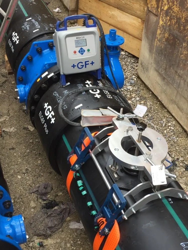 Den Auftrag zum Einbau der PE 100 Fernkälteleitungen im Projektabschnitt Schwanthalerhöhe und Laim erhielt die Firma Pro Bau Ingenieur- und Rohrleitungsbau aus Passau. Während der Montage kamen ELGEF Plus Elektroschweißmuffen und Anschlusssättel sowie Elektro- und Stumpfschweißmaschinen vom Typ GF 500 und GF 630 von Georg Fischer zum Einsatz. Mit den aufeinander abgestimmten Produkten, Werkzeugen und Plänen lieferte das Unternehmen für das Projekt die Fügetechnik aus einer Hand. „Bei GF sind Produkte, Geräte und Werkzeuge sehr gut aufeinander abgestimmt. So konnten wir ausgezeichnet damit arbeiten und die Leitungen schnell und sicher verlegen“, kommentiert Andreas Weber, Bauleiter bei Pro Bau Ingenieur- und Rohrleitungsbau, den Ablauf des Einbaus.