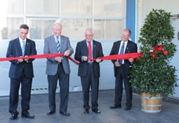 Feierten die Einweihung (von links): Yves Serra (CEO), Martin Huber (Präsident des Verwaltungsrates), Pietro Lori (Leiter GF Piping Systems), Claude Fischer (Head of Supply Chain).