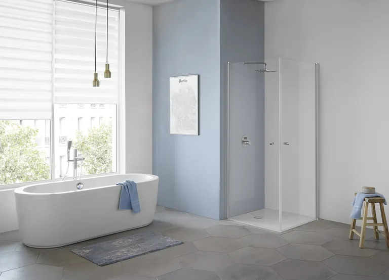 Da die Türen nach innen und außen geschwenkt werden können, sämtliche Profile geschlossen und auch die Drehgelenke sowie die Lager mit Abdeckkappen versehen sind, ist die Duschabtrennung besonders reinigungsfreundlich. Optional lässt sich zusätzlich eine GlasPlus-Beschichtung ordern, die die Pflege durch die an der Glasoberfläche abperlenden Wasser- und Kalkpartikel einfacher macht.