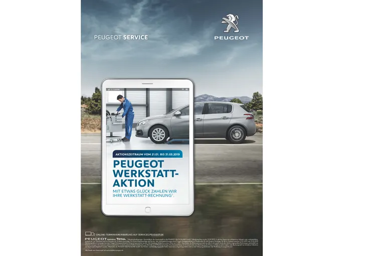 Wer nach dem Werkstattbesuch bei einem Vertragspartner von Peugeot seine Werkstattrechnung hochlädt, hat die Chance auf eine Kostenübernahme bis zu 1.000 Euro. – © Peugeot