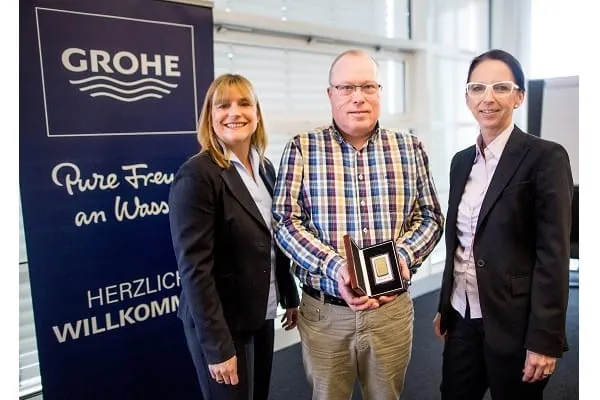 Matthias Erdmann nahm die goldene Anerkennung persönlich entgegen. Er führt die H.G. Erdmann GmbH, die 1972 gegründet wurde, in der zweiten Generation. Das mittelständische Handwerksunternehmen ist auf die Bereiche Sanitär und Heizung spezialisiert und beschäftigt aktuell zwölf Mitarbeiter. Doch nicht nur der Hauptgewinner profitierte von der Aktion. Europaweit erhielten alle Grohe Smart Mitglieder, die zwischen dem 1. September und 31. Dezember 2016 eine Eurosmart Armatur erwarben, die doppelte Anzahl an Smarts und konnten so ihre Treuepunkte-Konten deutlich aufstocken. Zusätzlich gewann jeder 150. Käufer eine Eurosmart Waschtischarmatur, die ihm automatisch zugeschickt wurde.