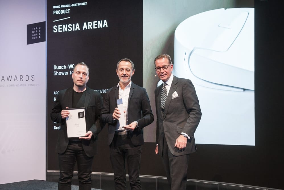 Das Dusch-WC „Sensia Arena“ von Grohe gewann mit „Best of Best“ die höchste Auszeichnung der Iconic Awards 2016. Insgesamt erhielt das Team des Grohe-Designstudios bei der Preisverleihung am 4. Oktober 2016 in München vier der begehrten Preise.