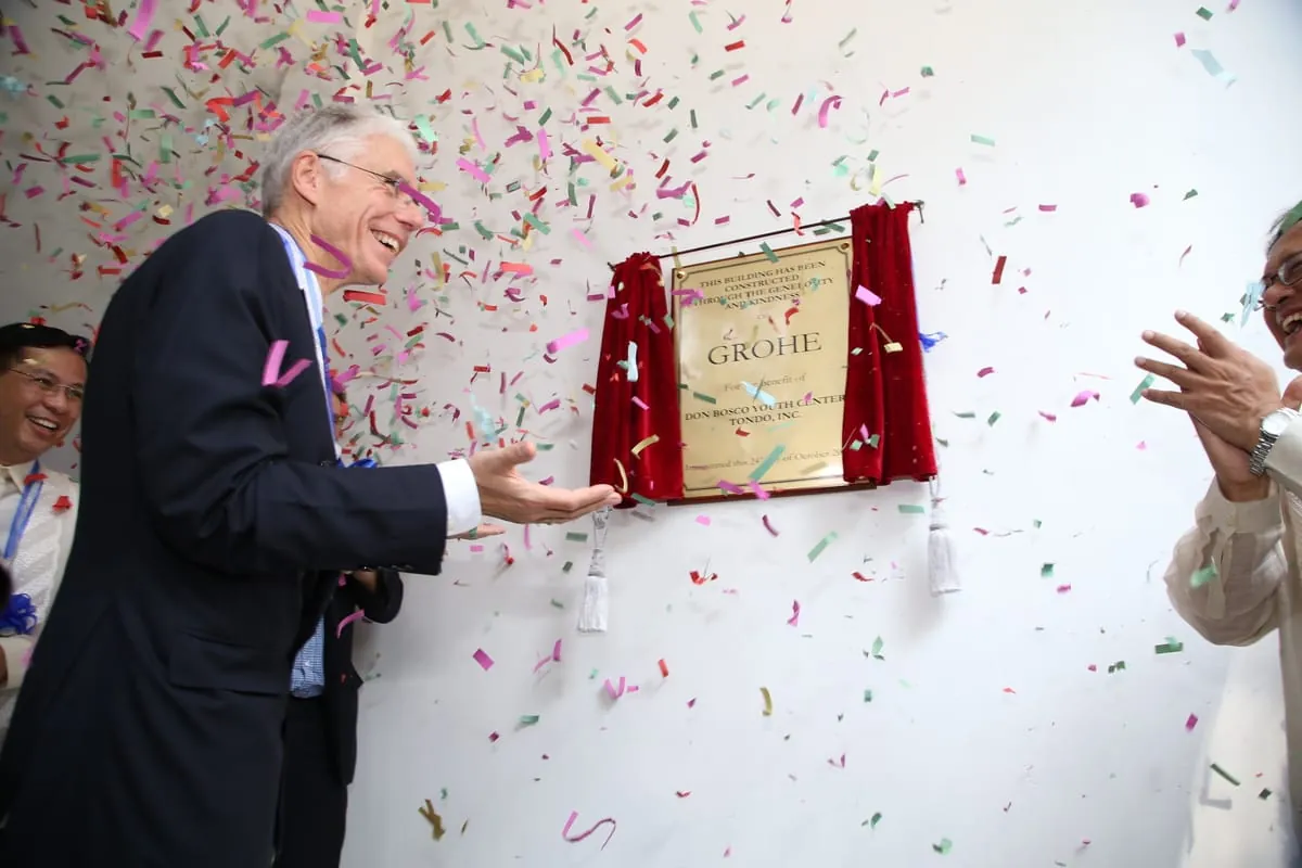 „Heute ist für uns alle ein bedeutender Tag“, so Grohe Vorstandsmitglied Michael Mager anlässlich der Einweihung am 24. Oktober 2015. „Wir haben in den sechs Jahren seit Beginn unserer Partnerschaft mit Don Bosco Mondo e.V. in Indien viel geleistet und auch viel gelernt. Die Arbeit hat Früchte getragen und die Nachfrage aus der Wirtschaft nach unseren ausgebildeten Fachinstallateuren ist groß. Jetzt möchten wir hier auf den Philippinen diesen Weg fortsetzen und auch der Jugend von Manila-Tondo Ausbildungsplätze anbieten. Damit sie später eine reale Chance haben, ihren eigenen Lebensunterhalt durch qualitativ hochwertige Arbeit zu verdienen und unsere Fachpartner vor Ort mit professionell geschulten Installateuren zusammenarbeiten können.“