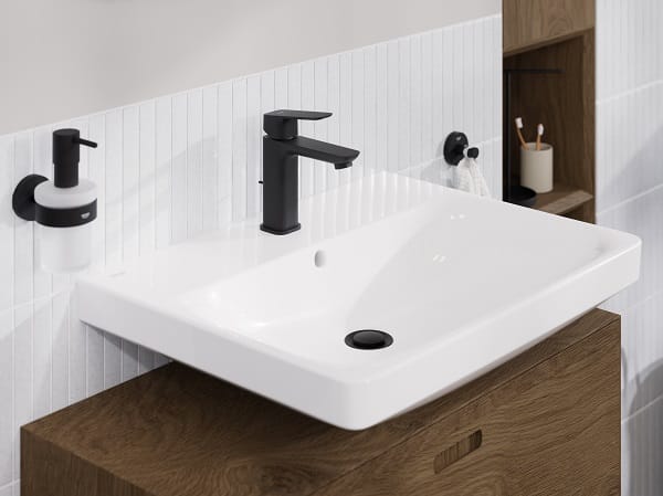 Die neue Armaturenlinie Grohe Cubeo will zeitlose Ästhetik, Langlebigkeit und wassersparende Funktionen zu einem erschwinglichen Preis vereinen. Mit ihrem Soft-Square-Design und den beiden Oberflächenvarianten – wahlweise in Chrom oder Matt Black – fügen sich die Armaturen in unterschiedliche Badkonzepte ein.