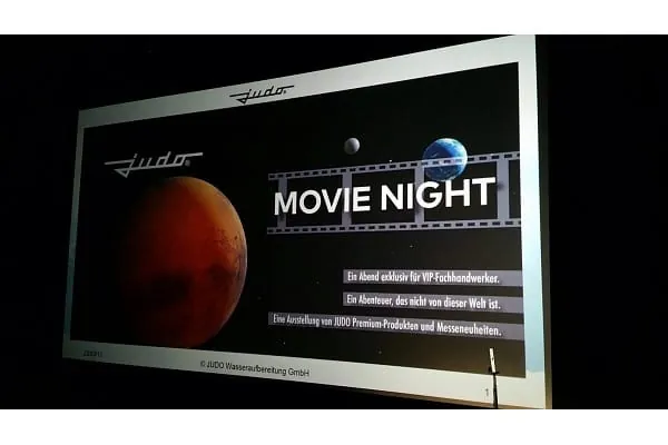Anschließend präsentierte Claus Sperber in einer knapp halbstündigen Präsentation Wissenswertes zum Unternehmen Judo im Allgemeinen und zu den Neuheiten der zurückliegenden ISH im Besonderen. Und Luft holen war noch nicht so schnell angesagt, denn direkt im Anschluss startete auch schon der neue Blockbuster ‚Life‘, der die Zuschauer fast zwei Stunden in den Bann bzw. in die Weiten des Weltraums zog.