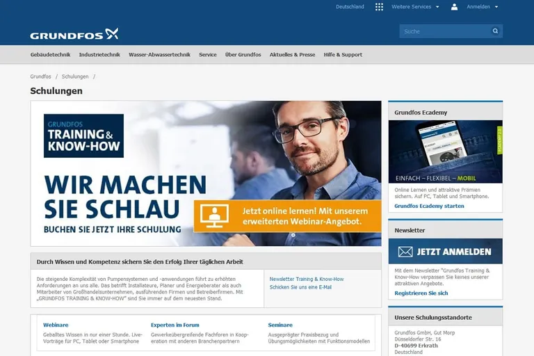 Von der aktuellen Situation sind zurzeit auch viele Schulungsveranstaltungen betroffen. Zum Schutz von Teilnehmern und Referenten setzt Grundfos deswegen seine Präsenzseminare vorübergehend aus und erweitert kurzfristig sein Programm an Online-Schulungen.