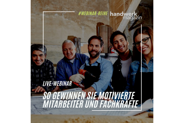 Wo finde ich in Zeiten des Fachkräftemangels noch gute Auszubildende und motivierte Fachkräfte? Das Online-Seminar von handwerk magazin zeigt Handwerksunternehmern, worauf es ankommt, welches Rüstzeug es für die effektive Mitarbeitergewinnung braucht und wie Stellenanzeigen & Co. aufgebaut werden sollten. Referent und Handwerk-Berater Daniel Dirkes verrät, warum tatsächlich etwa 15 % der Fachkräfte wechselwillig sind und wie Sie junge Menschen für das Handwerk begeistern. An praktischen Beispielen zeigt Dirkes, dass Mitarbeitergewinnung für jeden Betrieb, egal welcher Größe, möglich ist. Auf Wunsch analysiert der Experte auch Job-Websites oder Stellenanzeigen und gibt sofort umsetzbare Optimierungstipps.