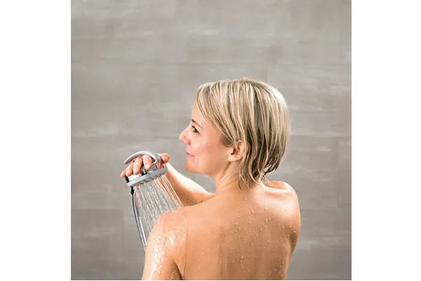Einzigartig und praktisch ist die Hansamedijet Flex mit ihrem ergonomischen Griff und der Soft-Touch-Oberfläche. Dank der Drehebene mit 360 Grad im Brausegriff zeigt der Schlauch der Brause immer nach unten – für eine besonders komfortable Anwendung.