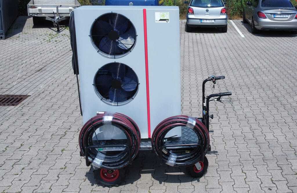 Mit ihrer „Plug-&-Play-Technik“ ist die Anlage auf der Baustelle direkt einsetzbar. Sie überzeugt durch ihre hohe Energieeffizienz und ein breites Einsatzspektrum. Darüber hinaus ist sie BAFA-förderfähig. Die fahrbare Wärmepumpe ist aktuell in den Leistungsstärken 12 und 50 kW erhältlich. In Zukunft sollen auch größere Kapazitäten umsetzbar sein.