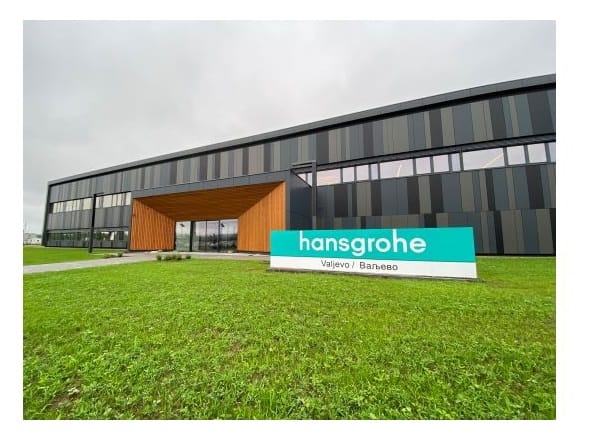 Das neue Hansgrohe-Werk wurde in der Gemeinde Valjevo, etwa 100 km südwestlich der Hauptstadt Belgrad, auf einem 130.000 m2 großen Grundstück errichtet. Es ist laut Hansgrohe der nachhaltigste Standort innerhalb der Gruppe. Eine Photovoltaikanlage auf dem Dach, ein Blockheizkraftwerk zur Stromerzeugung, Grauwassernutzung für die Toiletten, eine 26 cm dicke Dachdämmung und eine Dreifachverglasung der Fenster sind nur einige Beispiele, die das Gebäude und seine Nutzung nachhaltig machen. Dafür erhält Hansgrohe eine LEED-Zertifizierung (Leadership in Energy and Environmental Design), ein international anerkanntes Zertifizierungssystem für ökologisches Bauen.
