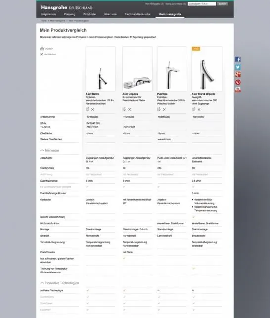 Hansgrohe macht Produktvergleich einfach