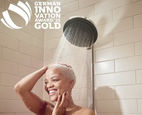 Gold für die hansgrohe Neuheit Pulsify: Die neue Duscharmaturenlinie der Premiummarke wurde am 18. Mai 2021 als Gewinner des German Innovation Award in Gold in der Online-Galerie des Rats für Formgebung in der Kategorie „Excellence in Business to Customer – Heating and Bathroom“ der Öffentlichkeit präsentiert.