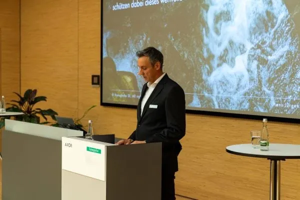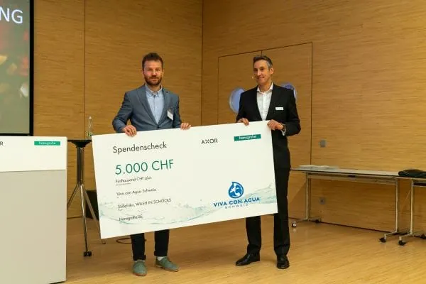 Wie wichtig Bildung für den Wasserschutz ist, zeigte Gregor Anderhub, Gründer und Geschäftsführer der Schweizer NGO Viva con Agua eindrücklich. Er und sein Team sensibilisieren für die Wasserungleichheit auf der Erde und plädieren für einen niedrigeren Wasserfußabdruck in der ersten Welt. Das Anliegen der Non-Profit-Organisation ist es, allen Menschen auf der Welt Zugang zu sauberem Trinkwasser und zu hygienischen Sanitäranlagen zu ermöglichen. Der Klimanetzwerker hatte Berichte und Bilder von Projekten im globalen Süden im Gepäck. Für einen Wash-Bus in Südafrika bekam Viva con Agua vom Hansgrohe-CEO Kalmbach einen Spendenscheck überreicht. Während des Wassersymposiums konnten sich die Gäste noch mit einem grünen Fingerabdruck auf einer Leinwand verewigen. Pro Fingerabdruck erhöhte sich die Spende um 50 Euro, sodass Hansgrohe jetzt 10.000 Euro spendet.