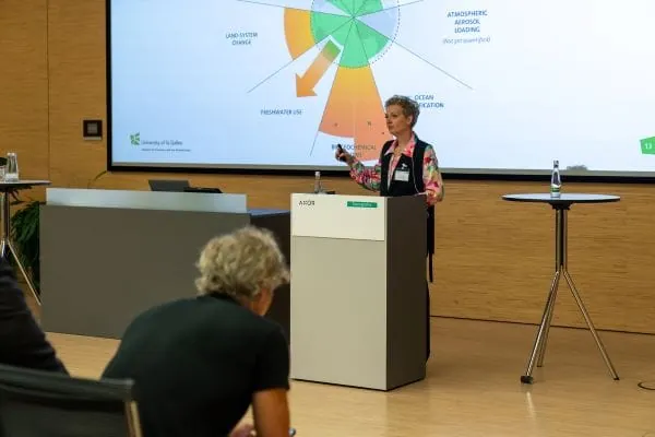 Wie erfolgreiche Wege aus dem „business as usual“ aussehen könnten, reflektierte unter anderen die Keynote-Speakerin Dr. Judith Walls von der Universität St. Gallen. Die Professorin für Nachhaltigkeitsmanagement nahm die Chefetagen der Wirtschaftswelt unter die Lupe. Nehmen unsere Leader den Klimaschutz ernst genug, und wie machen sie ihre Unternehmen resilient? Walls brachte Praxisbeispiele und skizzierte ein zukunftsfähiges, vorausschauendes Managementbild. Sie betonte, wie viel günstiger Investitionen seien, die Klimaproblemen aktiv entgegensteuerten. Unternehmer, so die Professorin, sind besser positioniert, um Nachhaltigkeitsherausforderungen mithilfe von Innovationen zu adressieren als Politiker. Sie verfügen über die Fähigkeit, Handlungen schneller vorzunehmen. Walls positiver Ausblick: „Es gibt Lösungen, und jeder Einzelne kann enormen Einfluss ausüben. Was wir jetzt brauchen, sind mehr Führungskräfte, die in Aktion treten.“