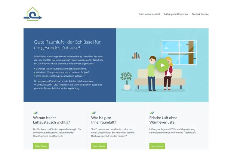 Die HEA-Fachgemeinschaft ist mit ihren Mitgliedsunternehmen gut für die Nachfrage der Wohnungslüftung aufgestellt: Das kostenfreie Informationsportal Wohnungslüftung+ (www.wohnungslueftung-plus.de) berät seit Mitte dieses Jahres interessierte Bauherren über das gesamte Themenspektrum der Wohnungslüftung. Zum Beispiel prüft ein auf der Seite platzierter Onlinecheck, ob eine lüftungstechnische Maßnahme notwendig ist. Der Check wird auch von der KfW im Rahmen der energetischen Fachplanung empfohlen.