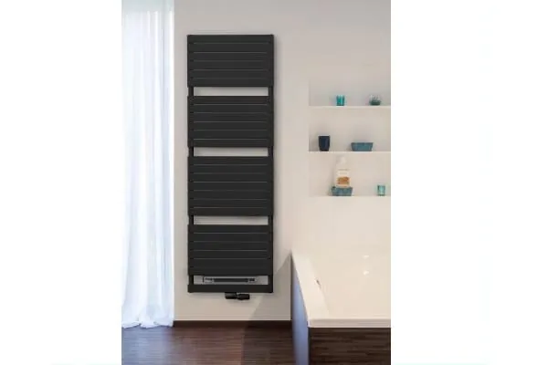 Das belgische Unternehmen Vasco präsentiert seine aktuellen Design- und Hybrid-Heizkörper. Neben elektrischen Modellen, Flachheizkörpern und Hybrid-Innovationen sind auch Heizkörper wie der Niva-Gebläsekonvektor zum Heizen und Kühlen am Messestand zu sehen. Ein Gebläsekonvektor ist ein Wärmetauscher mit Lamellen und integriertem Ventilator. Der Niva-Heizkörper ist für Wärmepumpenheizungen geeignet, denn er kann heizen und kühlen. Er besitzt einen integrierten, neuen Gebläsekonvektor, der die Räume in kurzer Zeit wärmt oder herunterkühlt.