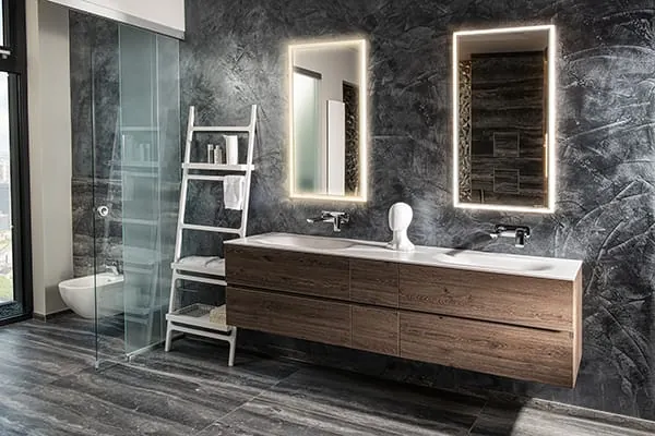 Kern der neuen Ausstellung sind 28 Musterbäder, eine Bad-Boutique sowie die Design-Werkstatt. „Bei diesem vielfältigen Angebot ist für alle Kunden das passende Badezimmer dabei“, ist Sandro Kolar, Verkaufsleiter Bayern, überzeugt. Er und sein Team präsentieren leistbare Tischlerqualität ebenso wie die Mein Holter Bad Kollektionen für unterschiedliche Anforderungen und High-End-Lösungen. Diese verbinden häufig auch die Themen Badezimmer und Wellness in den eigenen vier Wänden. So kommen auch jene auf ihre Rechnung, die Inspiration für den Traum vom eigenen Spa-Bereich suchen. Auf 70 m² machen zwei Saunen, Dampfduschen, ein Outdoor-Whirlpool sowie Gartenduschen Lust auf mehr. Das Lichtkonzept sorgt mit unterschiedlichen Stimmungen für ein wohltuendes Ambiente und unterstreicht die Bedeutung von Licht in der Raumgestaltung.