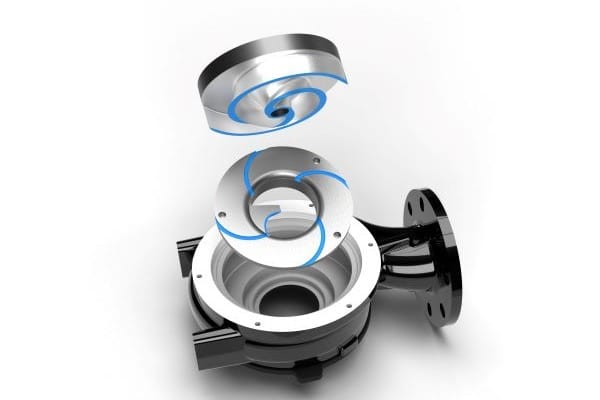 Das OC-Laufrad der Alligator-Pumpe verfügt über integrierte Schneiden und einen scharfkantigen Radius von 10 mm zur Schleißwand, die ebenfalls mit einer eigenen Schneide ausgestattet ist. – © Homa Pumpenfabrik GmbH