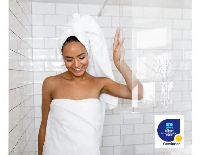 Der ZVSHK Award ist einer der bedeutenden Preise aus den Reihen der SHK-Branche. „Auch hier sind wir sehr stolz auf diese Auszeichnung. Es ist immer etwas Besonderes, Awards aus der Branche überreicht zu bekommen. Das honoriert unsere Arbeit und macht uns sehr stolz“, so Joachim Schulte. Mit der innovativen Glasversiegelung TwinSeal wurde eine HSK Neuheit prämiert. Sie bietet einen besonderen Oberflächenschutz, welcher ein Höchstmaß an Korrosionsbeständigkeit sowie überzeugende hydrophobe Eigenschaften miteinander vereint. Diese Kombination gibt der Glasinnenseite einen doppelten Schutzschild, welcher für eine ultraklare Durchsicht und Transparenz sorgt. Ein weiterer Vorteil: Die Reinigung der Duschkabine nach jedem Duschvorgang ist nicht mehr erforderlich. Eventuelle Rückstände können einmal wöchentlich ganz einfach mit einem Mikrofasertuch entfernt werden. Dank der neuen Glasversiegelung lässt sich der Einsatz von Reinigungsmitteln deutlich reduzieren. Dies hilft, Kosten zu sparen und die Umwelt zu schonen.