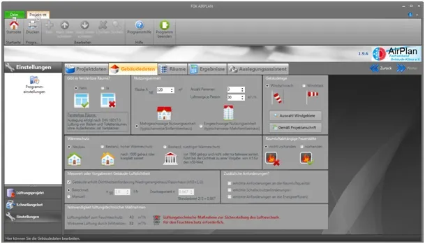 Mit der Software FGK-AirPlan, die kostenfrei im FGK-Online-Shop heruntergeladen werden kann, ist der Nachweis zum nutzerunabhängigen Mindestluftwechsel nach der Energieeinsparverordnung (EnEV) in wenigen Minuten erledigt. Soll eine Lüftungsanlage eingebaut werden, dann kann mit FGK-AirPlan der Luftvolumenstrom für jeden Raum ausgelegt werden.