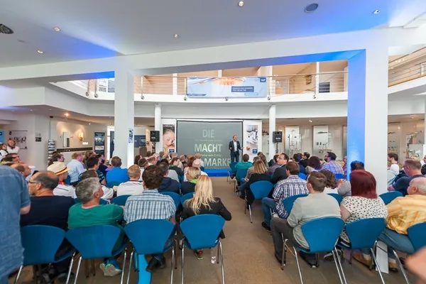 Das Grohe-Team stellte aktuelle Innovationen wie das Dusch-WC Grohe Sensia Arena sowie die Duschsysteme Grohe Rainshower SmartControl und Grohe Rainshower F-Series Aquasymphony vor. An unterschiedlichen Info-Points konnten sich die Gäste über das Treueprogramm Grohe Smart sowie das Grohe eTraining informieren, den Grohe Professional Selbstfahrer kennenlernen sowie eine Live-Verkostung am Grohe Blue Tasting Tool miterleben. Auf dem Programm stand neben einem Gewinnspiel, Werksbesichtigungen und der Montage eigener Handbrausen auch der spannende Vortrag „Als Marke zum Erfolg!“ des Erfolgstrainers und Top-Referenten Torsten Will. Der Experte für Motivation, Kommunikation und Erfolg berät internationale Konzerne sowie prominente Persönlichkeiten und inspiriert sie zu Bestleistungen.