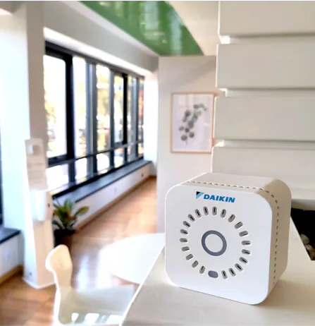 Der neue IAQ-Sensor von Daikin ist ein leistungsstarkes Gerät zur Messung und Überwachung der Raumluftqualität zum Beispiel in gewerblichen Anwendungen, Schulen, Restaurants und Einzelhandelsgeschäften.