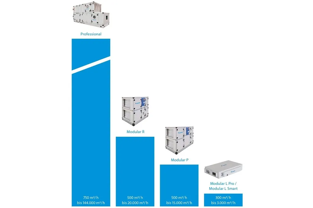 Die Daikin Lüftungsgeräte der Modular-Serie sind in verschiedenen Größen erhältlich. Die Lüftungsgeräte der Daikin Professional-Serie zeichnen sich durch ihre hohe Flexibilität aus. – © Daikin