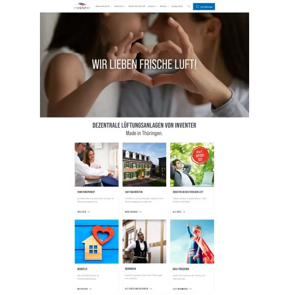 Das Prinzip der dezentralen Wohnraumlüftung wird auf der neuen Website mit vielen Grafiken und einer 360 Grad-Darstellung der inVenter-Lüftungssysteme anschaulich erklärt. Auch der Servicebereich mit umfangreichem Downloadmaterial und neuen Messeterminen wurde übersichtlicher gestaltet.