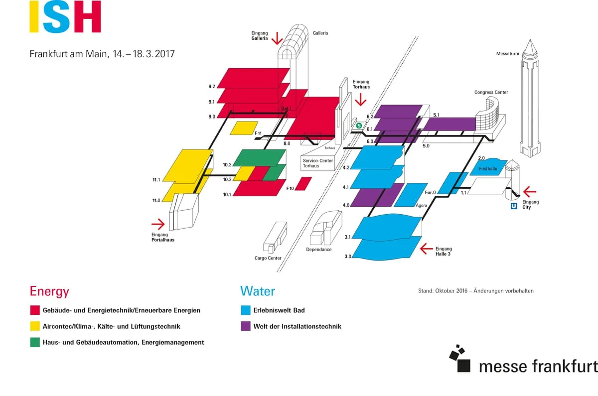 Während der ISH 2017 buhlen rund 2.400 Aussteller auf einer Ausstellungsfläche von 260.000 m² um die Aufmerksamkeit der Besucher. Zusätzlich locken diverse Foren und Sonderschauen mit Vorträgen und Preisverleihungen. Die drei Themenbereich ISH Energy, ISH Water und Aircontec versammeln eine Vielzahl von Topmarken auf einem Fleck, sodass ein Messebesuch lohnt.