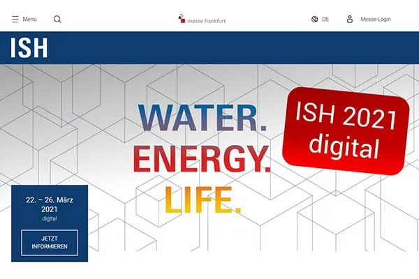 Die ISH vom 22. bis 26. März 2021 wird als rein digitale Veranstaltung stattfinden und eine Vielzahl an Angeboten bereitstellen. Dazu zählen beispielsweise Ausstellerpräsentationen (Produkte, Informationen, Videos, Ansprechpartner, Chatfunktionen und 1-zu-1-Videoanrufe), intelligentes Matchmaking mit passenden Geschäftspartnern zur Leadgenerierung unterstützt durch künstliche Intelligenz, Live-Streamings und On-Demand-Übertragungen des Rahmenprogramms sowie die Terminvergabe für Online-Meetings mit den Ausstellern. Und das alles ist während der Veranstaltung rund um die Uhr über die verschiedenen Zeitzonen hinweg weltweit verfügbar. Die Messe Frankfurt will dazu bald weitere Informationen bereitstellen.