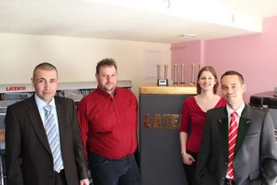 Das Fachunternehmen HDG Installationstechnik in Wald am Schoberpass hat ein vergoldetes Sondermodell des Solar-Schichtenspeichers Latento XXL 500 von IVT gewonnen. Der Hersteller hat das Unikat anlässlich der Markteinführung des Solarwärmesystems vor zehn Jahren verlost. Die obere Abdeckung des Speichers und der Latento-Schriftzug auf der Vorderseite sind vergoldet. Das Unikat ist zudem voll funktionsfähig. Trotzdem hat dieser Solarspeicher in einer Glasvitrine im Ausstellungsraum einen würdigeren Platz gefunden als in einem dunklen Heizungskeller. Es freuen sich: Geschäftsführerin Andrea Mehsner und Techniker Johannes Gröschl (2. von links auf dem Bild). Überreicht wurde der Gewinn durch IVT-Vertriebsleiter Rami Eid (links) und Fachberater Markus Winter.