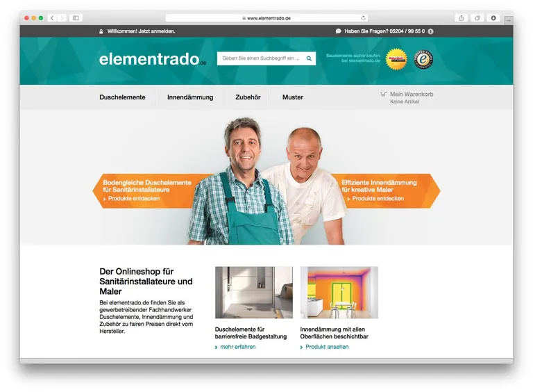 Der Onlineshop elementrado.de richtet sich ausschließlich an gewerbetreibende Fachhandwerker. Maler, Stuckateure und Sanitärinstallateure können die bewährten Jackoboard-Aqua-Duschelemente für eine barrierefreie Badgestaltung sowie das Jackocare-Innendämmsystem für mehr Behaglichkeit und geringere Heizenergiekosten ab sofort auf www.elementrado.de bestellen.
