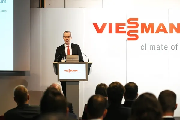 Durch die Beschlüsse des Pariser Klimagipfels ist die Verringerung der Treibhausgas-Emissionen als ein zentrales Ziel der Energiewende wieder stärker in den Fokus gerückt. Der industrielle/gewerbliche Bereich kann dazu einen wichtigen Beitrag leisten, machte Joachim Janssen, Chief Executive Officer (CEO) der Viessmann Group, in seiner Begrüßungsrede deutlich: „Die politischen Ziele sind ambitioniert, aber sie sind erreichbar. Im Wärmemarkt sind alle benötigten Technologien vorhanden, und gerade der Anlagenbau verfügt über das nötige Know-how für Planung, Installation und Service.“