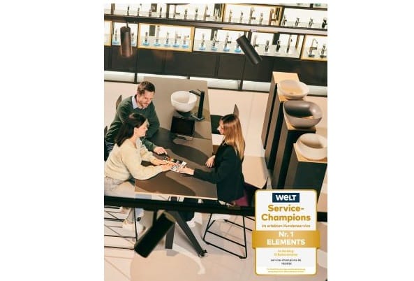 Die Elements-Ausstellungen wurden erneut als Service-Champion ausgezeichnet – bereits zum zehnten Mal in Folge. In der größten deutschen Service-Studie überzeugte das bundesweite Ausstellungskonzept durch Qualität, Beratungskompetenz und Handwerkspartner auf Augenhöhe. Damit bestätigt Elements seine führende Position im Badausstatter-Segment.