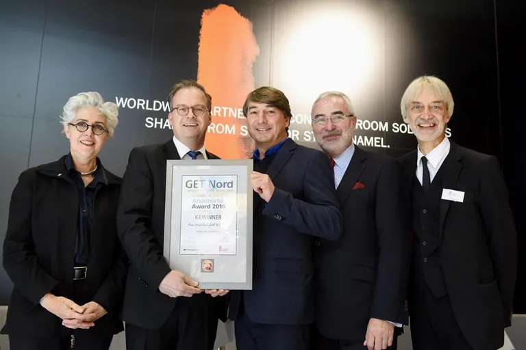 Mit einer feierlichen Zeremonie am Stand überreichte das Hamburger Architektur Centrum, gemeinsam mit der Hamburg Messe und Congress GmbH, den GET Nord ArchitekturAward 2016 an den Kaldewei.