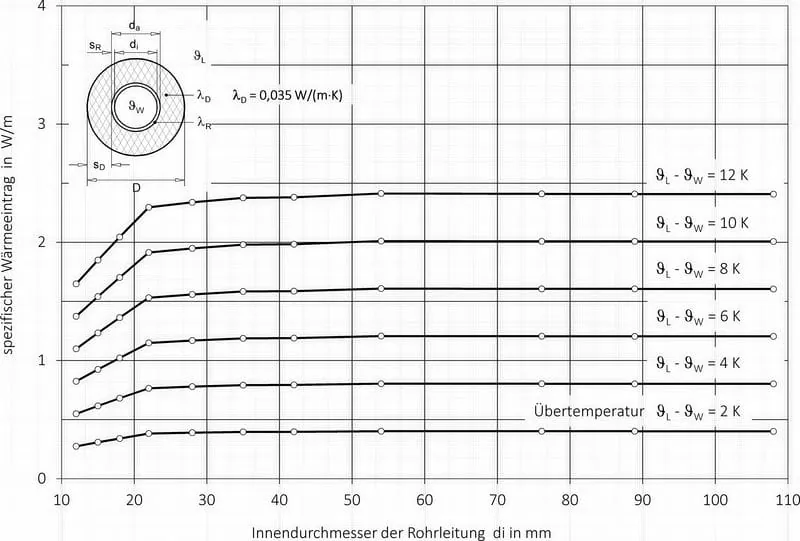 Damit in konventionellen Installationskonzepten ein Zirkulationssystem für das kalte Trinkwasser realisiert werden kann, muss ein zusätzliches Rohrleitungssystem aufgebaut werden. In Strömungsteiler-Installationen ist das nicht erforderlich, da das bereits für die Bedarfsdeckung vorhandene Rohrleitungssystem für die Kaltwasserzirkulation geeignet ist und mitgenutzt werden kann. Bereits bestehende KHS-Anlagen können daher i.d.R. mit geringem Aufwand von Spültechnik auf Kaltwasserzirkulation umgestellt werden (Bild 1). Im Gegensatz zu konventionellen Installationen ermöglichen Strömungsteiler-Installationen die kontrollierte Temperaturhaltung in allen Leitungsteilen bis in den Anschluss der Entnahmearmaturen hinein. Berechnungen zeigen, dass auf Grund der geringen Temperaturdifferenzen zwischen der Umgebungsluft und dem kalten Trinkwasser der Wärmeeintrag – und damit auch die Leistung des erforderlichen Kälteaggregates – relativ gering ist (Bild 2).