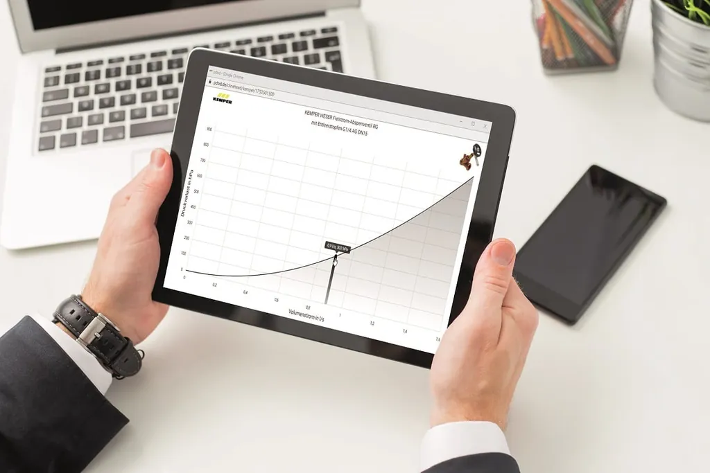 Mobil optimiert für Smartphone oder Tablet ist der Zugriff auf die dynamischen Kennlinien nahezu überall möglich. – © Gebr. Kemper GmbH + Co. KG
